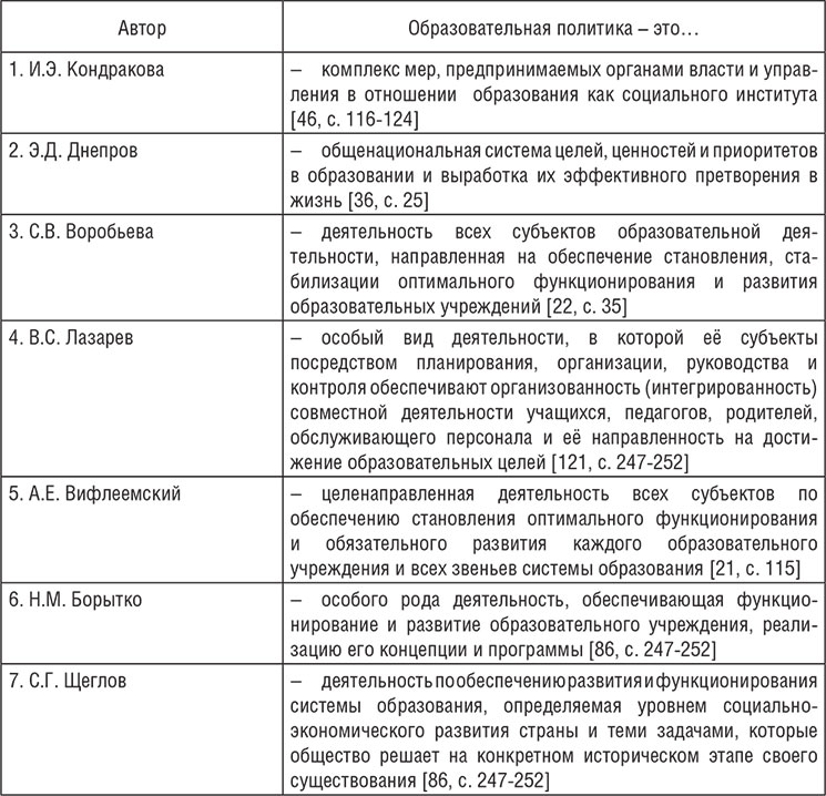 Таблица 5. Авторские определения термина «образовательная политика»