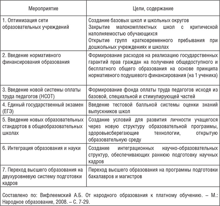 Таблица 7. Содержание основных реформ в сфере образования Российской Федерации