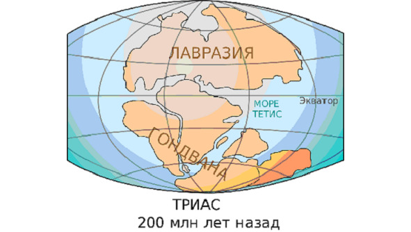 Trias dure pr?s de 50 millions d’ann?es, et se termine il y a 200 millions d’ann?es, une autre catastrophe mondiale, la soi-disant. Extinction triasique-jurassique des esp?ces. Les causes peuvent ?tre les m?mes que celles qui ont marqu? l’arriv?e d’une nouvelle ?re. Le r?sultat – l’extinction de la moiti? des esp?ces, la lib?ration de nombreuses niches ?cologiques – qui occupent sans tarder les dinosaures.