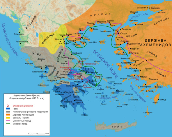 Mac?doine (nord des Balkans), jusqu'? ce que, par ailleurs, l’ancien alli? de Xerx?s, mit des garnisons dans tout, encore une politique souveraine de la Gr?ce, se pr?pare ? une attaque sur la Perse.