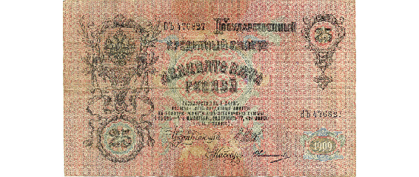 1. populaire banknote ce moment-l?, 25 roubles (une chambre dans un foyer de travailleurs, six mois de cheval sans pr?tention – et 25 roubles par rouble sont des cr?pes avec des ?ufs frais dans le restaurant ? sati?t?, le prix en 1911.