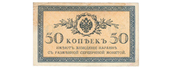 2. 50 kopecks en papier en 1915, cinq miches de pain d?j? lev?es en prix.