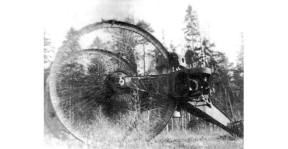 3. L’un des premiers chars au monde (v?hicules de combat blind?s) – “Netopyr”, reflet de la pens?e technique de l'?poque. L’id?e de chenilles n’est pas encore ma?tris?e, la diminution de la pression sp?cifique au sol est obtenue par une augmentation non naturelle du diam?tre des roues. Poids de combat – 60 tonnes. Armement: deux 76,2 mm. canons, 60 coups, huit 7,92 mm. mitrailleuses “Maxim”. R?servation: planche, front 10 mm. Equipage – 15 personnes. La hauteur du b?timent est de 9 m?tres (quatri?me ?tage). La vitesse estim?e le long de l’autoroute est de 17 km. h, une r?serve de 60 km. Puissance sp?cifique 8.5 hp En 1915, un ?chantillon a ?t? construit, en raison d’un centrage incorrect de la masse, il a imm?diatement d?croch?, il n’a pas ?t? accept? pour le service. Si c’est une r?ponse ? l’avance des troupes allemandes, alors la r?ponse est incorrecte. Selon la “th?orie de la conspiration”, le projet ?tait parrain? par des fonctionnaires agissant dans l’int?r?t de la Grande-Bretagne. Ils ont ?galement arr?t? le projet de “Outlander” de Perekhovshchikov, pas tout ? fait consid?r?, mais prometteur, capable de devenir un coin.