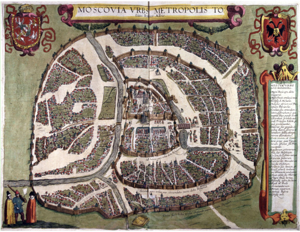 1. Plan Sigismond, 1610, avant la destruction de 1612. Le nord est ici ? droite. Dans le virage de la rivi?re Neglinka (alors il pourrait attraper un poisson merveilleux) – le Kremlin.