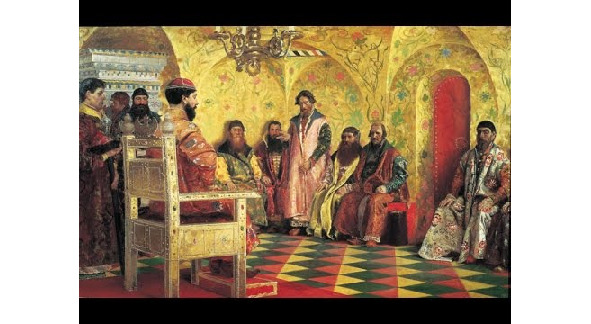 Une semaine apr?s la mort de Basile le Grand, les boyards tuent Yuri, le principal pr?tendant au tr?ne. Cinq ans plus tard, peut-?tre du poison Shuisky, la m?re qui a pris les r?nes meurt. Onze autres ann?es du conseil de tutelle et Ivan IV (1530—1584) est couronn? du royaume de la cath?drale de l’Assomption. L'?re des princes, ?gale dans la table europ?enne des rangs seulement aux princes et aux ducs, dans son ensemble est accomplie. Le titre est reconnu par l’Angleterre et l’empereur du Saint-Empire romain germanique, mais rejet? par le Vatican, au XIIIe si?cle, a ?t? donn? le titre “Rex Russiae” des terres de Prince du sud de la Russie Daniil Galitsky, une condition de propagation du catholicisme. La dynastie du Sud n’est pas d?velopp?e. Les relations avec le pape sont bris?es.