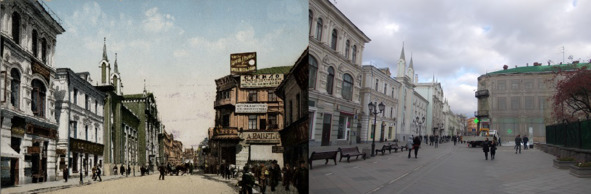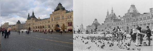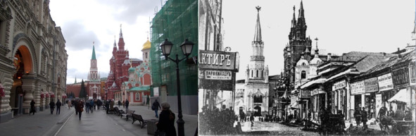 5. Place Rouge. Comparaison avec le temps moderne. Un guide pour les voyageurs sur le monde en quatre dimensions. Vue du Main Universal Store (GUM), construit en 1896 sur le site des galeries marchandes d?labr?es.