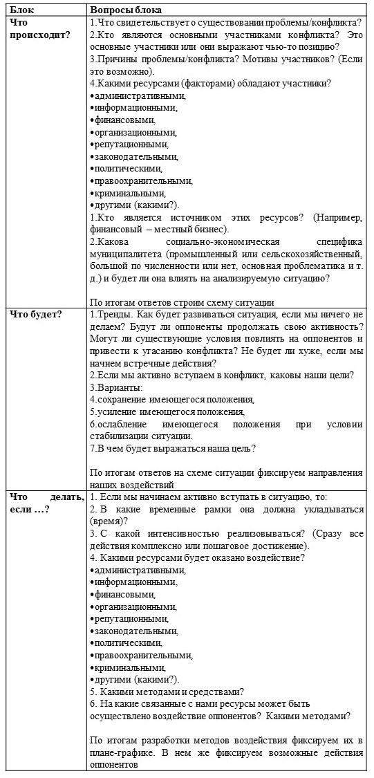 По большому счету АК представляет собой список вопросов, которые аналитик задает относительно конкретной ситуации, и набор стандартных элементов, на основе которых конструируются ответы. Общий список вопросов представлен в таблице 2.1. Однако естественно предположить, что в каждой конкретной ситуации он может быть расширен. Вопрос в том, какой уровень детализации будет необходим.