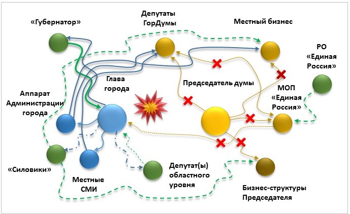 В приводимых моделях мы постарались отразить максимально возможное количество факторов и кластеров, которые потенциально имеют возможность влиять на ситуацию и/или ее участников. В этом случае при столкновении с похожим реальным конфликтом аналитику придется лишь «отсечь лишнее» – оставить только нужные элементы конструктора.