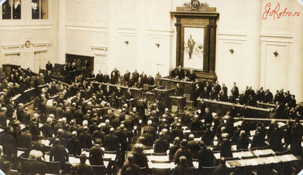 И, тем не менее, открытие в Петербурге 27.04.1906 г. I Государственной Думы было событием огромной исторической важности не только в нашей стране, но и во всем цивилизованном мире. Оно состоялось в самом крупном в столице Тронном зале Зимнего дворца и было обставлено весьма торжественно. Прибыло огромное число приглашённых, журналистов и дипломатических представителей из многих стран. Ждали царя, и он приехал. Однако «тронная» речь Николая II, в общем-то, тусклая и бесцветная, лишённая глубокого содержания, разочаровала присутствовавших. В довольно смятенном настроении депутаты Думы в тот же день отправились в построенный когда-то Потёмкиным при Екатерине II Таврический дворец для деловых заседаний.
