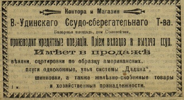 В июне 1917 года в Верхнеудинске было создано Ссудо-Сберегательное товарищество. Цели товарищества: предоставление кредитов своим членам до 300 рублей, развитие сельского хозяйства и ремесленичества, содействие сбыту продукции, произведённой в мастерских своих членов, приём денежных вкладов от посторонних лиц. К началу 1917 года в Забайкалье существовало около 60 подобных товариществ. Товарищества не имели между собой связи, а Государственный банк никак не руководил их деятельностью. Возникла идея объединить кредитные товарищества в Кооперативный кредитный союз. В феврале 1917 года в Чите состоялся учредительный съезд Забайкальского Кредитного Кооперативного Союза83. Ссудо-Сберегательное товарищество получило бесплатно во временное пользование комнату от Товарищества Прибайкальских кооперативов. В сентября 1917 года Ссудо-Сберегательное товарищество получило 5 тысяч рублей в кредит от Госбанка. До конца года все средства были выданы в кредит пайщикам товарищества84.