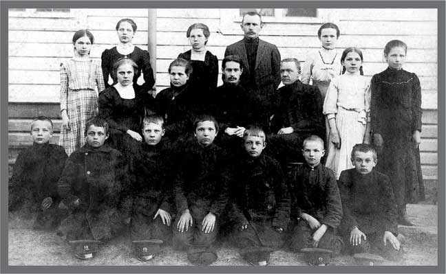 Учителя и ученики Онежского высшего начального училища. Стоит вторая справа Лиза Кучина. 1910–913 гг. (Из фондов ОИММ)