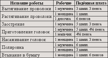Таким образом, заработная плата колебалась от 4½ пенсов (18 копеек) до 6 шиллингов (3 рубля).