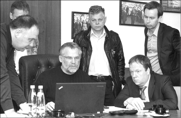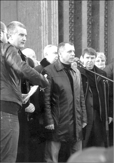 С. В. Аксенов, В. А. Константинов, С. П. Цеков и другие 23 февраля 2014 г. на митинге у Верховного совета Крыма: формирование народного ополчения.
