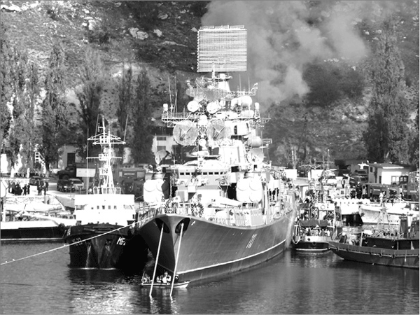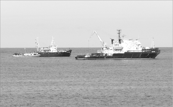 Буксиры «Шахтер» и МБ-173 — гроза украинского флота — перекрыли выход из Севастопольской бухты. 11 марта 2014 г.