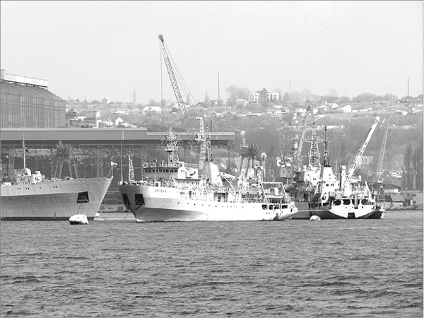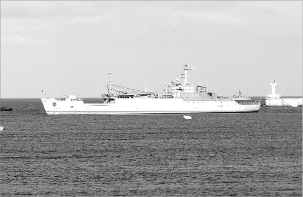 Судно управления «Славутич» блокируется судном размагничивания СР-541.