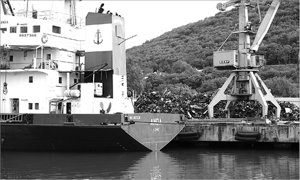 Блокадопрерыватель-сухогруз «Анда» под флагом Того, порт приписки Ломе, грузит железный лом в Инкермане. 12 мая 2015 г.