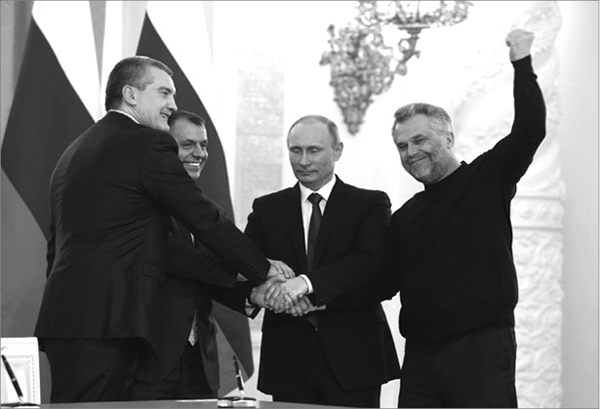 Крым вернулся домой. С. В. Аксенов, В. А. Константинов, В. В. Путин, А. М. Чалый в Кремле