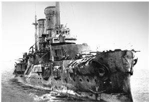 Рапорт мичмана Деньера капитану 1 ранга Антонову. Командиру погибшего лин. кор. «Слава»