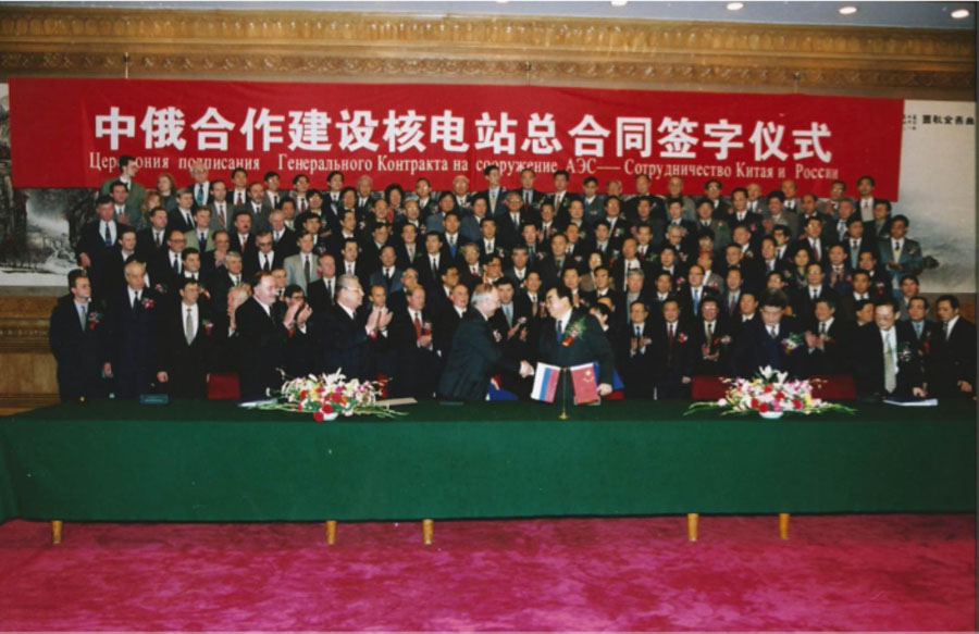 В декабре 1996 г. в ходе визита в Москву премьера Государственного совета КНР был подписан протокол о принципах рамочного контракта на сооружение Ляньюньганской АЭС (переименованной впоследствии в Тяньваньскую АЭС), который определил основные требования к станции, график сооружения объекта, принципы разделения ответственности, контрактную цену и структуру рамочного контракта.