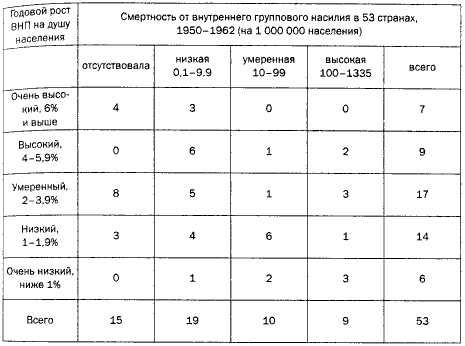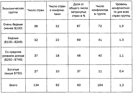 Таблица 1.2. Душевой уровень ВНП и насильственные конфликты (1958–1965)