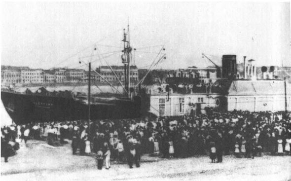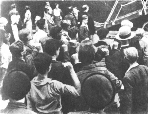 Ленинградцы пришли проводить челюскинцев в трудный поход Северным морским путем во Владивосток.