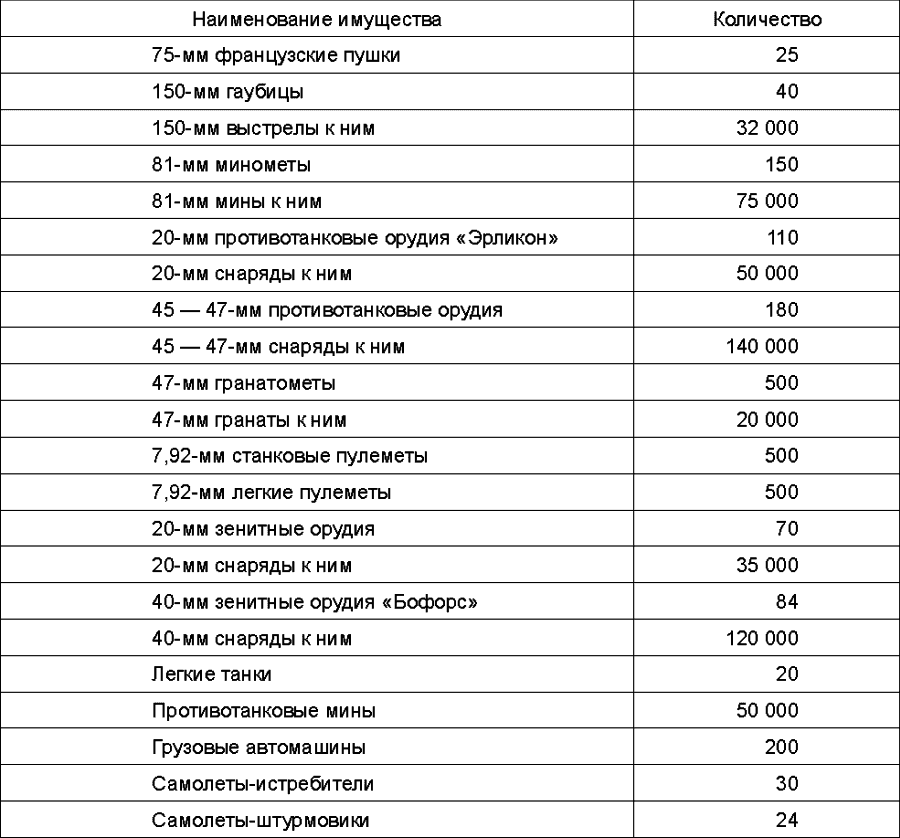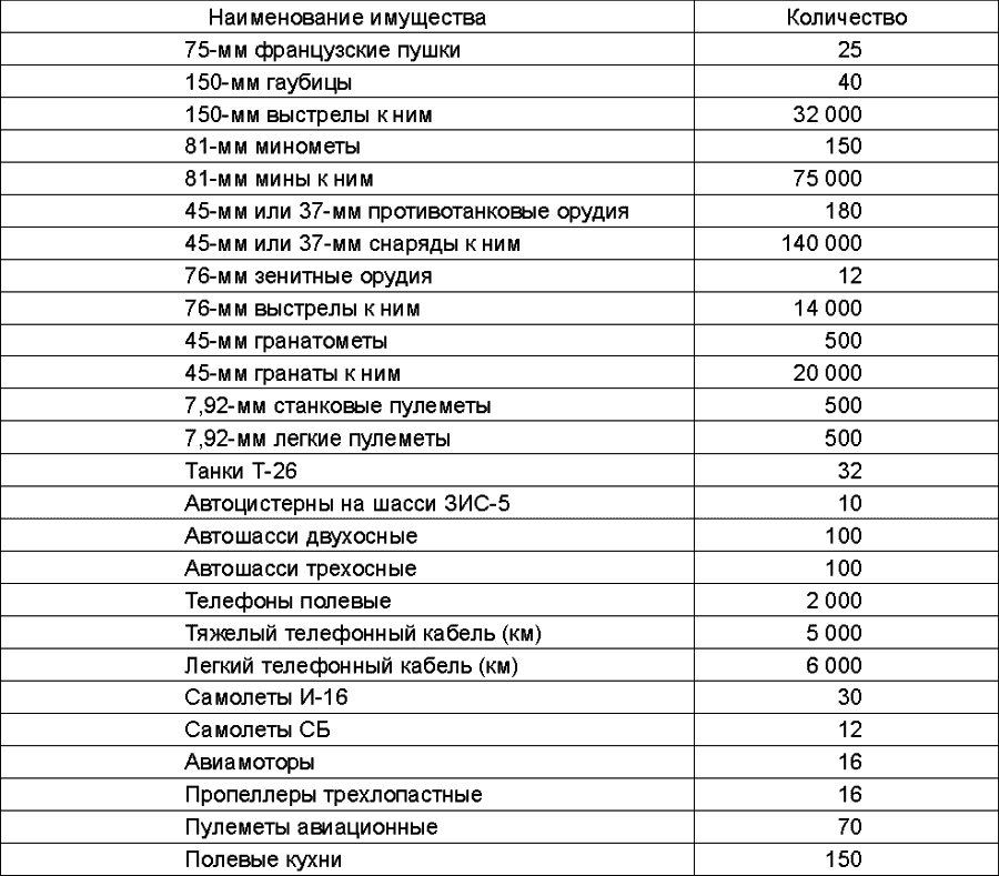 Таблица 32. Заявка Литвы на военное имущество, переданная 17 декабря 1939 г.