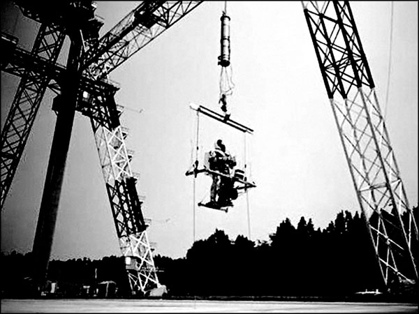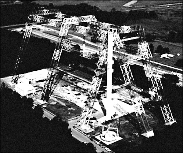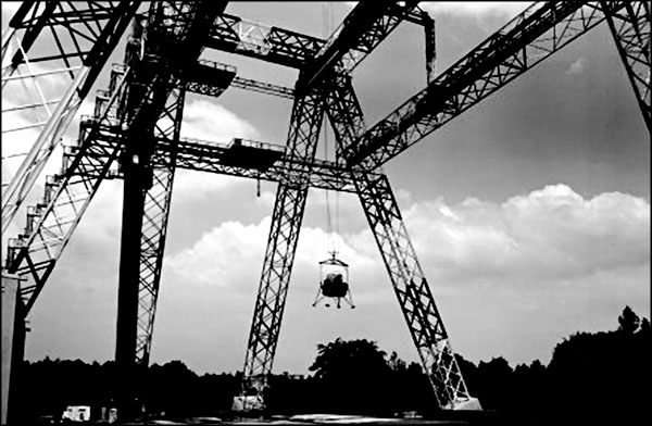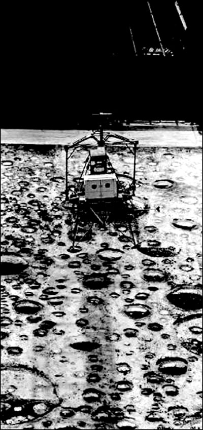 В Лэнгли была сооружена съемочная площадка, оборудованная очень высоким (около 76 метров) траверсным подъемным краном. Кран этот, уже прилично ржавый, сохранился до сих пор, и его можно увидеть на космических снимках, доступных через Google Earth. М.Т. (рис. 135 и 136). Но в те годы он был новеньким, а под ним была сымитирована поверхность Луны (рис. 137–141). Именно в этом павильоне были сняты кинофильмы, требовавшие движения объектов лунных кабин, астронавтов и луномобилей (рис. 142–145). Фотографий, особенно на американском сайте, очень много, но я не буду их давать, поскольку они не сообщают ничего нового по существу вопроса.