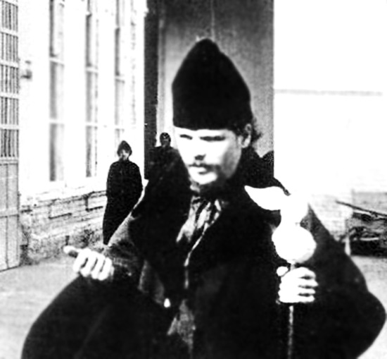 Императрица и Вырубова сели за рояль. Они в четыре руки принялись исполнять бетховенскую «Лунную сонату» – любимое произведение Александры Фёдоровны. В зале горели свечи, и неожиданно в темноте дверного проёма возникла, словно приведение, огромная фигура. Кто-то неподвижно встал в полумраке большого зала и стал пристально смотреть на сидевшую спиной к выходу императрицу. Большие часы неспеша и гулко пробили полночь.