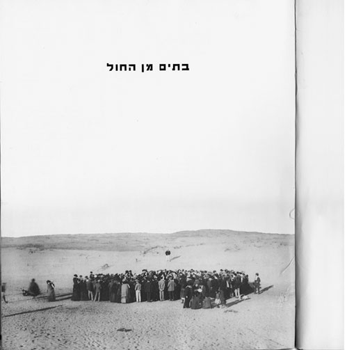 Ил. 26. Книга «Дома из песка», заглавная страница с фотографией участников земельной лотереи в Ахузат-Байте, 1909.