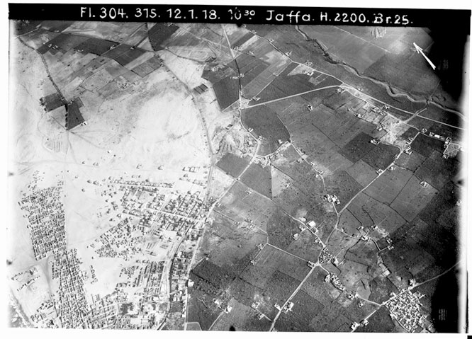 Ил. 27. Белый город и черный город. Немецкий аэрофотоснимок, датируемый 1918 годом. Из каталога выставки: «Тель-Авив в фотографиях. Первое десятилетие, 1908–1918». Музей Эрец-Исраэль, Тель-Авив.