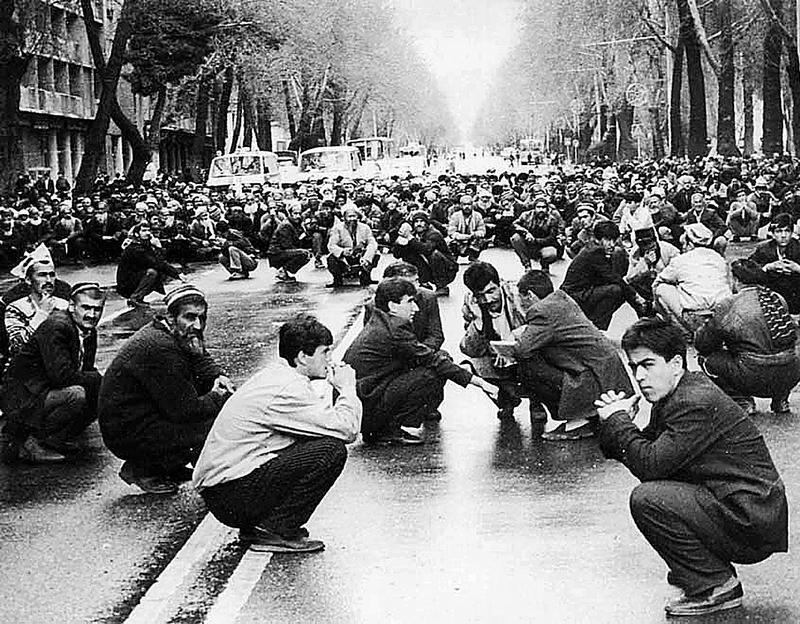 Осенью 1991 года люди вышли на площадь, протестуя против недавно проведенных выборов – правда, в данном случае выборы проходили в Верховном Совете Таджикистана, где исполняющий обязанности президента Таджикистана Кадриддин Аслонов был отправлен в отставку, а на его место назначен Рахмон Набиев. Это решение оппозиция в Таджикистане посчитала незаконным и начала митинговать.
