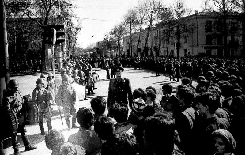 Первые попытки организации проправительственных митингов проходили достаточно осторожно. Во всяком случае, свою повестку они формулировали крайне робко. В небольшом сообщении корреспондента "Известий" Александра Карпова, напечатанном в номере газеты от 3 апреля "Митинг в Душанбе может стать бессрочным", сообщалось о том, что 2 апреля на площади 800-летия Москвы (она же площадь Озоди) собрались люди, провозгласившие в качестве своих целей "содействовать созданию "круглого стола" между оппозицией и властями". А сам митинг назван "митингом посредников". Однако эта акция, кажется, развития не получила. Главными участниками оппозиционных митингов, как и в сентябре 1991 года, были выходцы из сельских районов Таджикистана. В частности, из Гармской зоны. Мобилизация участников проходила достаточно активно. И они были вполне решительны. Во всяком случае, в материале Олега Панфилова в "Независимой газете" от 8 апреля "Рамадан закончился, митинг набирает силу, противостояние продолжается" упоминается о том, что многие участники шли до Душанбе пешком 100-150 километров, поскольку дороги были перекрыты властями. В опубликованных на интернет-ресурсе "Солдат России" воспоминаниях бывшего жителя Душанбе Марата Яновича Хакела, оказавшегося свидетелем событий начала 1990-х упоминается, между прочим, что одним из лозунгов на площади Шахидон был: "Нет потомкам кровавого Чингисхана во главе Таджикистана"[66]. Имелось в виду, что Ходжент некогда входил во владения внука Чингисхана Чагатая. Так что у регионального разделения в Таджикистане были и довольно экзотические проявления. Между тем по мере того, как становилось ясно, что власти не готовы идти оппозиции на уступки, а переговоры не приносили результата, действия митингующих становились всё более радикальными. 8 апреля демонстранты перекрыли центральные улицы Душанбе.