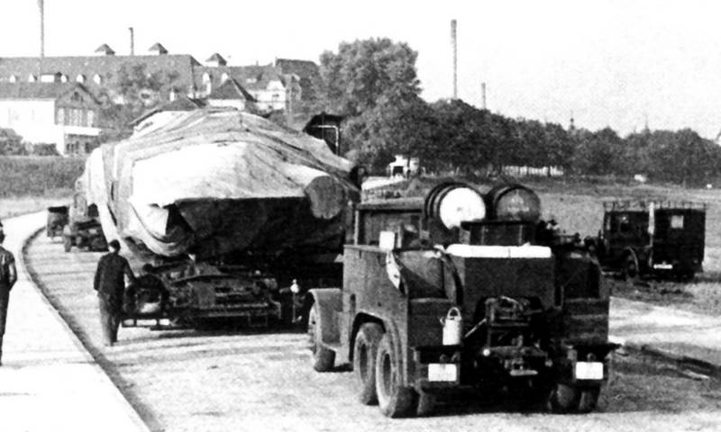 Перевозка немецкой подводной лодки по шоссе при переброске с Балтики на Черное море. 1942 г.