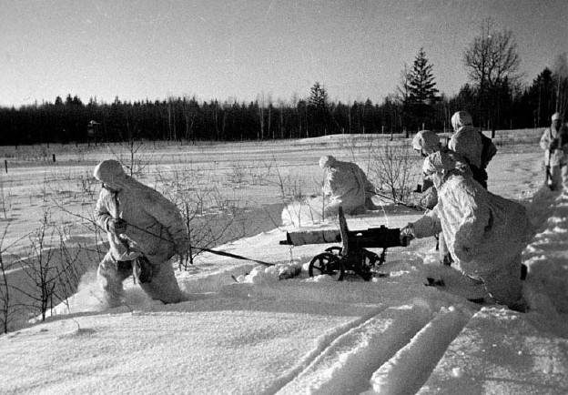 Нужно сказать, что, когда мы с этим командиром искали места, откуда можно посмотреть на немецкие боевые порядки, тоя увидел как со стороны Сталиногорска, правее по дороге идет кто-то на лыжах. Когда я подошел ближе, то увидел это мальчик лет 14. А в это время из деревни выехал обоз подвод 30. я спрашиваю этого мальчишку, кто там едет, чьи подводы? Он говорит, что это наши красные. Я тогда подумал, что значит и в Сталиногорске – тоже наши. И если нам правее податься, то мы обойдем укрепления немцев и все. Но потом оказалось, что эти подводы были не наши. Мы видим, что эти подводы идут прямо на немецкие огневые точки и решили предупредить. Там был небольшой овраг и много снега. Пока мы лезли по оврагу, они уже подъехали, а когда вылез на возвышенность, они уже проехали. К последней подводе была привязана лошадь. И когда они поехали, лошадка оторвалась и пошла назад. Я беру лошадь под уздцы и говорю, что придется сесть на лошадь, догнать обоз и предупредить их. Кричать было бесполезно, так как ветер был в нашу сторону. Они ничего не услышали бы. Но они могут нарваться на пулемет. Я сажусь на лошадь, а в это время немцы, как загалдят, как закричат и начали бить по нас из автоматов. Тогда мы поняли, что это – немцы. Я повернул свою лошадь. Лейтенант схвати ее за гриву и мы побежали обратно. Вернулись в роту, все рассказали.
