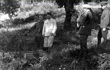 Иосиф Сталин, Лаврентий Берия и дочь Сталина Светлана на даче