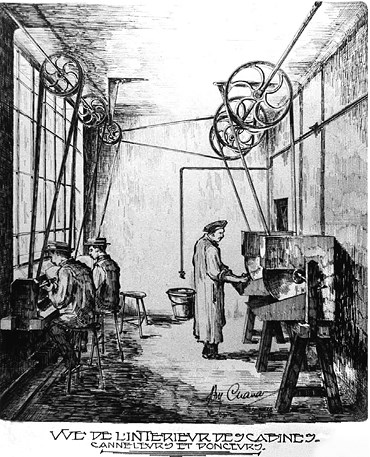 Смертоносные пожары, вызванные целлулоидом, продолжались и в 1920-х, и в 1930-х годах, до тех пор пока на смену этому материалу не пришли другие, менее горючие. В этой череде трагических происшествий история французского городка, где производили гребни, служит радостным исключением, особенно на фоне производственных рисков и классовой эксплуатации рабочих в других странах. В Ойонна, городке, расположенном в 80 км от Женевы, веками производили гребни. Местные почвы не позволяли вести интенсивное сельское хозяйство, поэтому большинство жителей зарабатывали себе на жизнь изготовлением самшитовых гребней для франкских солдат и религиозных паломников. В 1820-х годах они стали производить гребни из рогов животных, а когда мэр города увидел и был поражен красотой изделий из целлулоида, представленных на Всемирной выставке в Париже в 1878 году, город начал оптовые закупки нового сырья. Искусные мастера из Ойонна и их новые модели гребней сделали город мировым центром производства наиболее декоративных целлулоидных гребней, производившихся в маленьких тесных, как правило, семейных мастерских. Чтобы обеспечивать производства энергией, к концу 1880-х годов неподалеку от города была выстроена огромная электростанция, что сделало Ойонна одним из первых городов во Франции с электрическим освещением[562]. В 1902 году город построил собственную целлулоидную фабрику на безопасном расстоянии от городских границ[563]. На фотографии 1910 года запечатлен цех отгрузки готовой продукции Огюста Боназа, известного дизайнера, поставлявшего гребни в дома высокой моды в Париже (ил. 4 ниже и ил. 8 во вклейке). Ровные ряды женщин и несколько клерков-мужчин упаковывают в коробки горы заколок для волос, готовя к почтовой отправке. У каждой из сотрудниц в опрятно поднятых наверх волосах можно заметить по меньшей мере один гребень необычной формы, а у некоторых женщин их несколько. Демократичный, доступный целлулоид отвечал социальной структуре местного сообщества: в городе не было ни аристократов, ни даже буржуазии, и горожане избрали четырнадцать кандидатов от социалистической партии, которые в 1921 году стали членами коммунистической партии. Во время Второй мировой войны Ойонна был оплотом французского Сопротивления нацистским захватчикам[564]. Противостояние мелких предпринимателей крупным капиталистам и желание противодействовать пожарной опасности могут быть связаны с характером и историей города, и оно навечно запечатлелось в архитектурных формах самой инновационной постройки в Ойонна – фабрики La Grande Vapeur (ил. 5, 6).