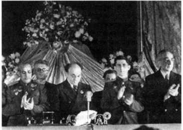 В 1943 г. состоялась длительная поездка руководства Еврейского комитета (Михоэлс и Фефер) в США, Великобританию, Канаду и Мексику. Основная цель их миссии заключалась в том, чтобы, используя образ СССР как главного спасителя евреев во время войны, активизировать материальную помощь в пользу СССР со стороны еврейского населения зарубежных стран. В качестве одного из факторов мобилизации общественного мнения зарубежного еврейства были использованы «намеки на поддержку Советским Союзом еврейских притязаний на Палестину». По некоторым данным, намеки эти в годы войны получили весьма отчетливое выражение225. Визит Михоэлса и Фефера за границу, где на митингах с их участием присутствовало до 500 тыс. чел., оказал большое воздействие на еврейские круги зарубежных стран: во — первых, на помощь СССР настроились те организации, которые ранее стояли в стороне (в частности, «Джойнт»), во — вторых, были подорваны позиции групп, враждебных по отношению к СССР226. На дальнейшее усиление пропагандистской работы среди еврейского населения зарубежных стран был нацелен третий митинг представителей еврейского народа, проведенный 2 апреля 1944 г. под лозунгом «Больше усилий, больше активных действий, укрепляющих мощь антигитлеровской коалиции, приближающих час разгрома ненавистного врага».