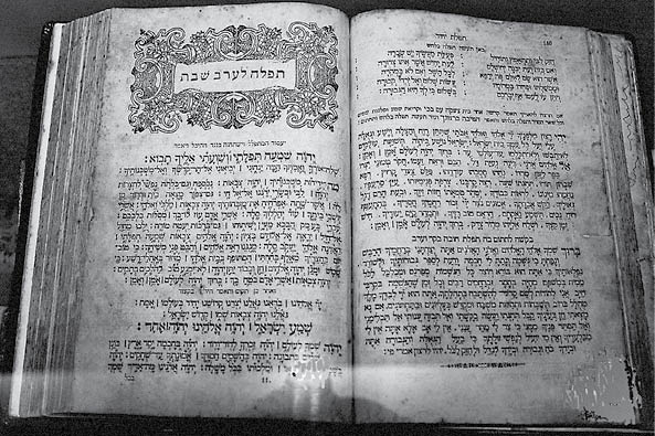 Старинный еврейский сидур (молитвенник), открытый на вечерней субботней молитве. На снимке – экземпляр, хранящийся в Музее караимской культуры Галича (Украина)