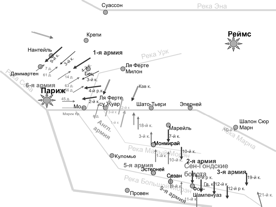 К вечеру 9 сентября немецкие армии Правого крыла начали общий отход. Выиграв все частные бои, они проиграли сражение в целом.[75]