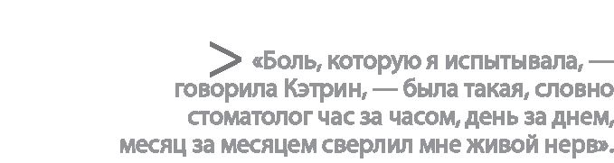 «Боль, которую я испытывала, – говорила Кэтрин, – была такая, словно стоматолог час за часом, день за днем, месяц за месяцем сверлил мне живой нерв».