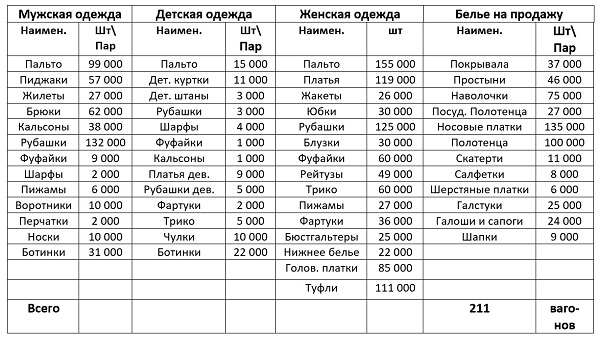 Поношенные ткани 5 вагонов 19 000 кг