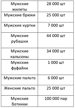 Старая мужская одежда, не считая б е л ь я 97 000 комплектов