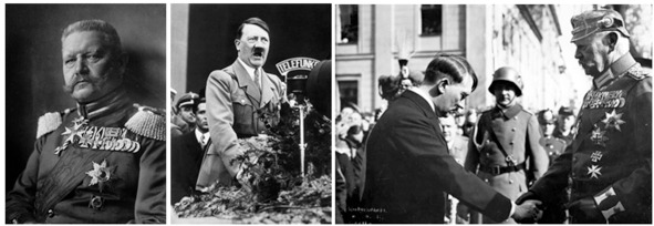 1. П. фон Гинденбург фельдмаршал, рейхспрезидент Германии в 1925—1934 гг. 2. А. Гитлер 3. 21 марта 1933 г. состоялось символическое рукопожатие Гинденбурга и Гитлера в гарнизонной церкви в Потсдаме