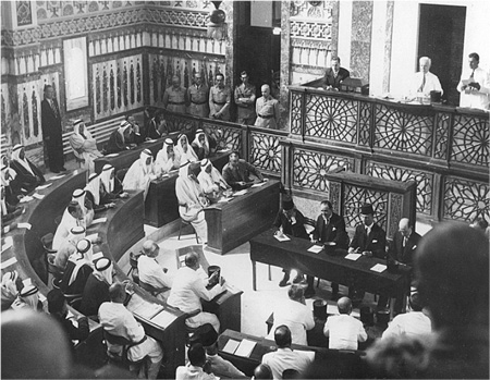 4. Открытие сирийского парламента 17 августа 1943 года. После провозглашения правительством «Свободной Франции» независимости Сирии и Ливана в июле 1941 года сирийцы избрали свое первое национальное правительство. Список «Национального блока» набрал безоговорочное большинство голосов, и его лидер Шукри аль-Куатли на первой сессии парламента (на фото) был избран президентом Сирийской республики.