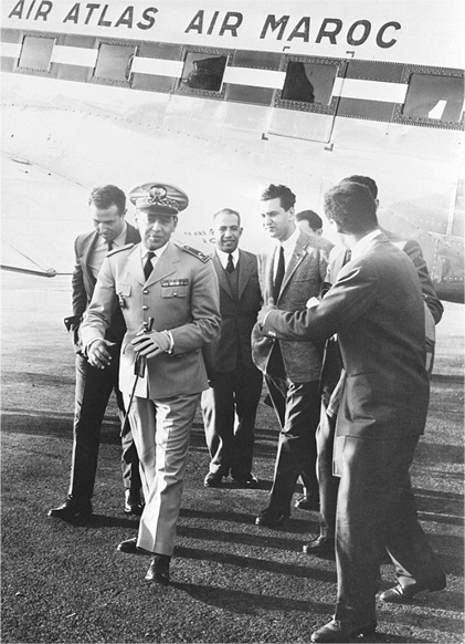 9. Руководство алжирского Фронта национального освобождения 22 октября 1956 года перед посадкой на марокканский авиалайнер, который по пути в Тунис будет перехвачен французскими ВВС и посажен в алжирском городе Оран. Ахмад Бен Белла, Мухаммад Хидер и Хусейн Айт Ахмад (слева направо) будут арестованы и до окончания Алжирской войны просидят во французской тюрьме. Алжирских повстанцев провожает марокканский принц Мулай Хасан (впоследствии король Хасан II, на снимке в военной форме), сын султана Мухаммада V.