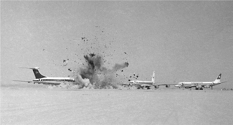 16. Народный фронт освобождения Палестины захватил взлетно-посадочную полосу Доусонс Филд посреди пустыни к востоку от иорданской столицы Амман. С 6 по 9 сентября 1970 года боевики НФОП захватили авиалайнеры американской авиакомпании «Транс Уорлд Эйрлайнз», британской «Бритиш Оверсиз Эйруэйз Корпорейшн» и швейцарской «Свисс Эйр» и посадили их в так называемом Аэропорту революции. Все 310 пассажиров эвакуировали из самолетов, которые 12 сентября были взорваны. Эта операция помогла палестинцам привлечь внимание международной общественности к своей борьбе, однако переполнила чашу терпения иорданцев, заставив короля Хусейна начать кровопролитную войну Черного сентября (1970–1971), которая закончилась изгнанием палестинских вооруженных формирований из Иордании.
