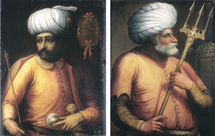 1 и 2. Портреты османского султана Селима I, который в 1516–1517 годах завоевал арабские земли империи мамлюков, и Хайр ад-Дина Барбароссы, берберийского пирата, в 1519 году приведшего североафриканское побережье под османское правление. Эти работы кисти флорентийских мастеров были написаны ок. 1550 года, уже после смерти обоих исторических деятелей, и, вероятно, входили в собрание Медичи, которое друзский эмир Фахр ад-Дин II видел, когда находился в изгнании во Флоренции в 1613–1618 годах. «Там были портреты всех исламских султанов и арабских шейхов», — с изумлением отмечал придворный хронист Фахр ад-Дина.