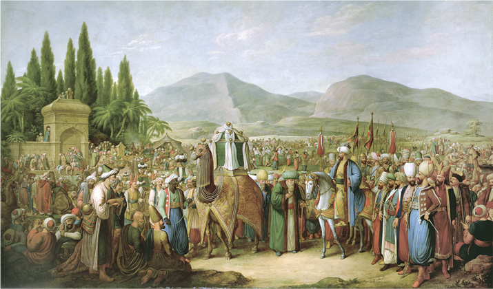5. На картине Георга Эмануэля Опица (1775–1841) преклонных лет правитель Горного Ливана эмир Башир II Шехаб (стоит в центре с тростью) приносит клятву верности египетскому генералу Ибрагим-паше (верхом) за воротами Акры в 1831 году. Ибрагим, сын правителя Египта Мухаммада Али, в течение шести месяцев осаждал Акру, а после захвата этой стратегически важной крепости завершил завоевание Сирии.