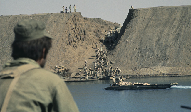 2. Днем 6 октября 1973 года египетские войска форсировали Суэцкий канал и прорвали оборону Израиля вдоль песчаных валов линии Бар-Лева. Совершив нападение в еврейский праздник Йом-Киппур, египтяне застали израильтян врасплох и уже через несколько минут после начала атаки подняли свой флаг над территориями, оккупированными Израилем в июне 1967 года. Это была первая за два десятилетия войны победа арабского мира, одержанная с оружием в руках, над еврейским государством.