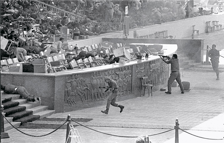 7. 6 октября 1981 года был убит президент Египта Анвар Садат. Ежегодно он, надев парадный мундир, присутствовал на военном параде 6 октября, учрежденном в честь победоносных событий войны 1973 года. После 1979 года, когда Египет, заключивший мирный договор с Израилем, оказался в изоляции в арабском мире, эта дата приобрела для Анвара Садата особое значение. На свой последний парад президент Египта прибыл в открытом лимузине.